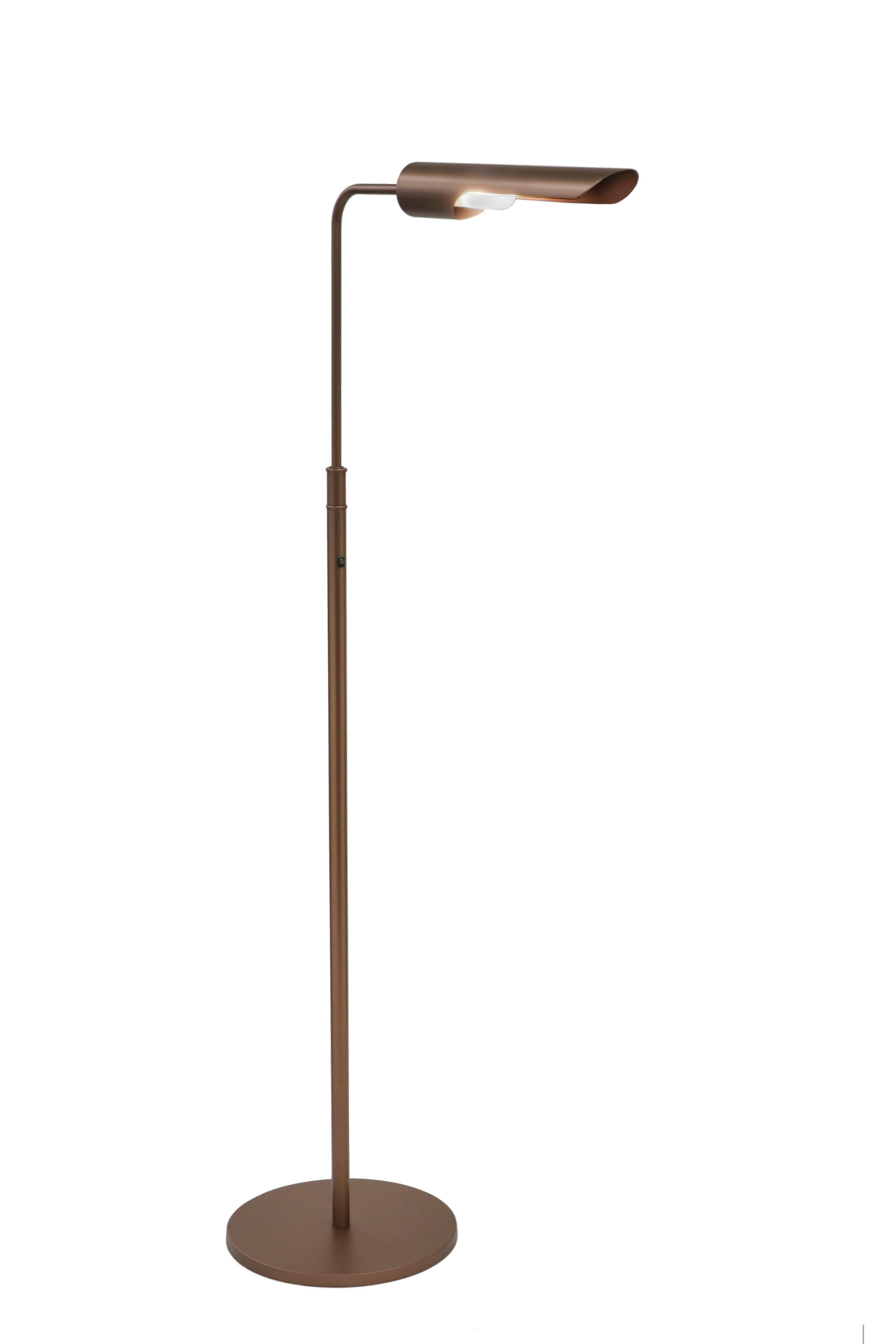 Floor Lamp Finish: Oxidized Bronze Height: 60” Width: 45″ Shade: Steel Size: 14.25″ L x 2.5″ Dia Switch: Rocker Wattage: 100 W Max